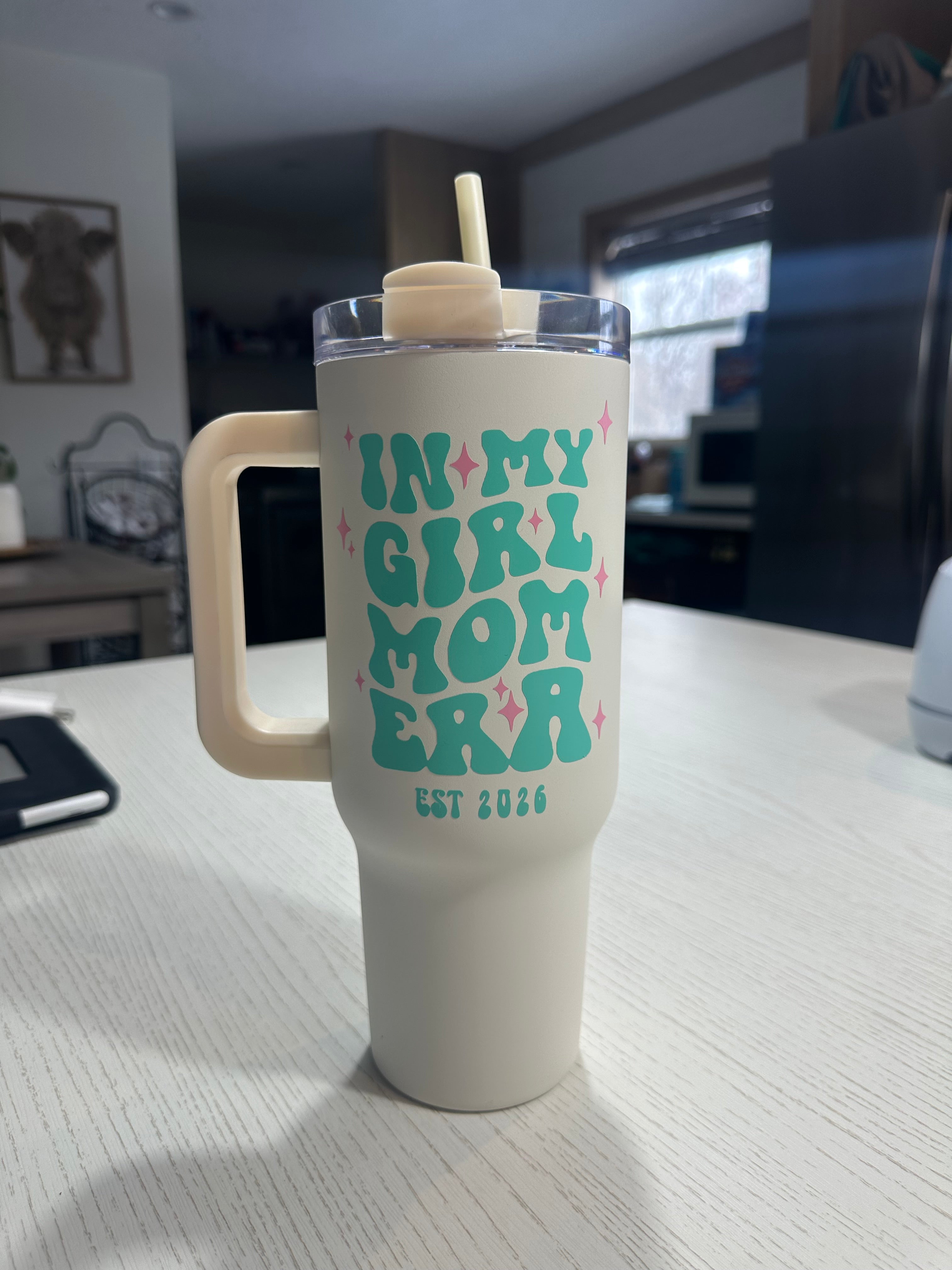 Sold outPink Glass with Teal Cowprint